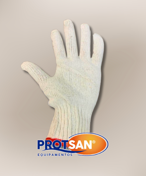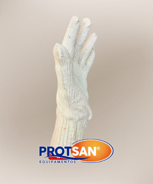 Luva de algodão tricotada 2 fios, sem pigmentos, para proteção das mãos contra cortes, atritos e materiais ásperos durante o trabalho.